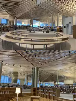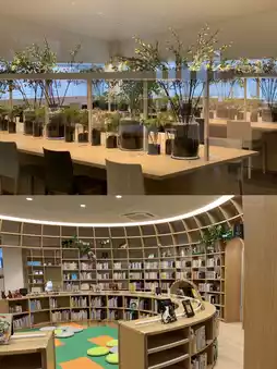 In the silent running space, you can relax and read while surrounded by potted plants.