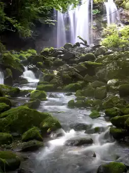 A 10-meter waterfall where spring water flows from Mt. Shirasasa