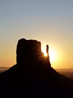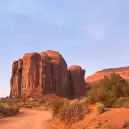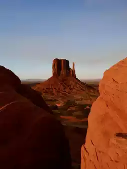 The twilight in Monument Valley is the most enchanting moment of the red earth landscape. As the sun dips low, its rays bathe the towering sandstone pillars, painting them in a blend of deep red and golden orange hues. These rock formations, standing silently in the desolate expanse, resemble steadfast guardians witnessing countless sunrises and sunsets.
