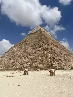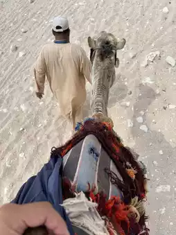 🗺️ 2-hour camel tour through the sands of time with the epic view of the Pyramids of Giza towering around me 🐫💨