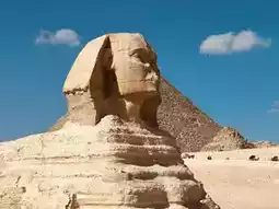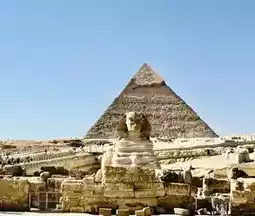• The Great Sphinx — the giant statue guarding the pyramids, with a lion’s body and a human face, symbolizing the pharaoh’s power and wisdom.