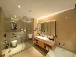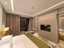 The hotel opened in 2019 and is still in good condition. The minibar is equipped with a full set of Chinese tea sets, tea bags, and six bottles of water. The mini fridge also has two free soft drinks, and the welcome fruit is plentiful, even more than some InterContinental hotels. There are also snacks on the bedside table. I can say that the benefits for high-tier members are very generous.