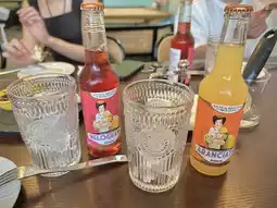 For drinks, red is pomegranate and yellow is yellow-orange, both are soda.
