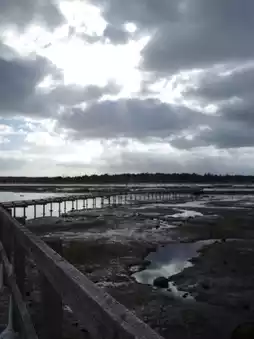 Five walking trails are available, allowing visitors to explore wetlands, forests, and lakeshores in 1.5 to 2 hours. The Nature Center provides information on local birds and plants.