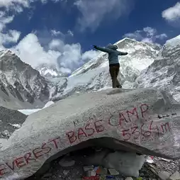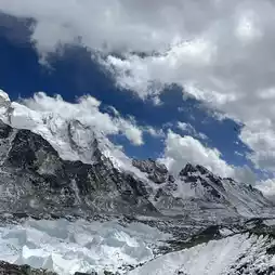 All the excitement remained in my heart. Everyone has to climb up the "stone" to take pictures, and our land is certainly no exception (see picture). Also, what I have been most looking forward to is seeing the Khumbu Glacier up close (see picture). After staying for about half an hour, I couldn't wait to leave... It was cold and windy, so cold that my hands and face were stiff... Once again, I admired the climbers who climbed to the top.