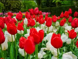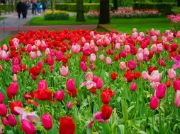 Keukenhof Gardens, known as the Garden of Europe, has the world's largest tulip garden with more than 800 different varieties and a total of about 7 million flowers, making it the most beautiful tulip garden.