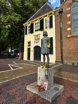 Reflect at the Anne Frank statue and nearby historical landmarks.