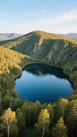 2. Rhododendron Lake (drone shots of golden forest + blue lake)