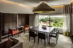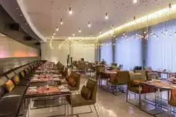 The hotel has four restaurants and lounges, including Fire, Agni, Mist, and Aqua by the pool. Mist Café is highly recommended, open all day, offering a variety of delicious food and perfect service. The vegetable salad is uniquely presented, and there are two omelet stations to avoid queues, and a wide variety of breakfast drinks. The waiters warmly welcome guests to ensure a pleasant dining experience for every guest.