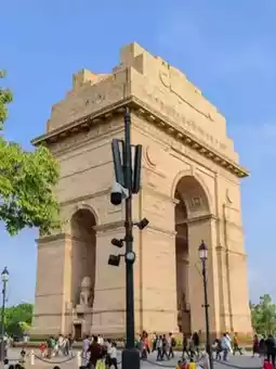 india Gate stands tall as a majestic war memorial in New Delhi, honoring the brave soldiers who sacrificed their lives during World War I. Its grand architecture, inspired by the Arc de Triomphe in Paris, is both powerful and elegant.