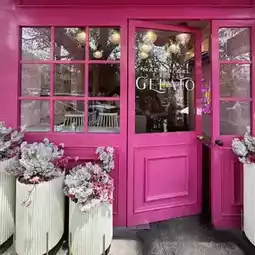 It is an ice cream shop that stands out from the color of the shop, which is bright pink 💕