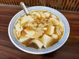 This bowl of tofu pudding has a very traditional flavor. It has a dense texture and a light charcoal flavor. I'm not sure what that flavor is. It also has a bit of Chinese medicine (?). Anyway, it's hard to describe. When I discussed it with my friends, I couldn't say for sure and decided it was charcoal flavor. Haha, you can go try it yourself and tell me what it tastes like!