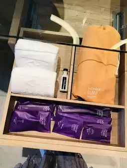 Atmosphere/Facilities: I booked the Qu Tao Man Hotel in Banqiao, New Taipei City, for a gathering with my sisters. What attracted me most was that the Qu Tao Man Hotel was a new hotel and many of its designs were in my favorite purple. The transportation here is convenient, there are many department stores nearby, and there are many delicious snacks nearby. The room is quite large, and the view from the high floors is also very good. There is no obstruction from the building at a glance, and the view outside the window is very good. The toilet is separated into dry and wet areas, and there is a small bathtub. Many designed cups and furniture with a sense of culture and creativity are used. It is currently a quarantine hotel, and it is quite good even if I return to China to stay here.