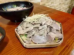 Those who dare to eat offal can order a mixed goose heart, liver and gizzards.