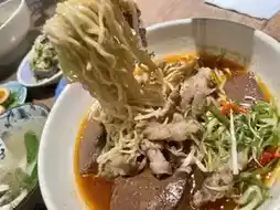 Today I came to a noodle shop near Jiangzicui MRT station. The decoration is very artistic and the noodles are super delicious. They sell dry noodles, soup noodles and rice. I ordered spicy snowflake beef. The soup is just right, not too spicy or salty, and there is duck blood in it. The snowflake beef is also very tender and delicious. The noodles are handmade 😋. It is a shop worth visiting again 😇