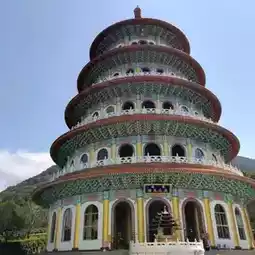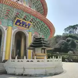 I looked around the temple and walked up the 5-story pagoda to see the view of New Taipei City. One side is the sea and the other side is the mountain. I stopped to pay respect to the gods and statues of Bodhisattvas and Mahayana Buddhas on every floor in the middle of the pagoda.