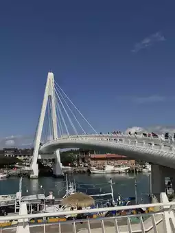 Tamsui Fisherman's Wharf is a multifunctional leisure fishing port recently developed by the New Taipei City Government. It has a beautiful floating dock and a spacious port park. There is also a boat-shaped landscape bridge across the port for pedestrians to enjoy the view. There is also a 330-meter-long wooden boardwalk on the pier. Leaning against the fence and admiring the view of the Tamsui River estuary in the wind is a leisurely experience. Fisherman's Wharf in the evening is one of the best places to enjoy the sunset.