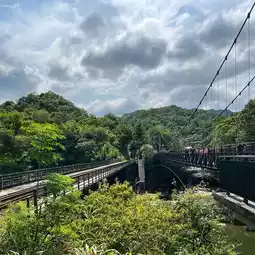 There are many trails around the waterfall suspension bridge, where you can enjoy the beautiful scenery of Shifen Falls from different angles. There are dense forests on the left and right sides. If you watch carefully, you will also see many special furnishings😌!