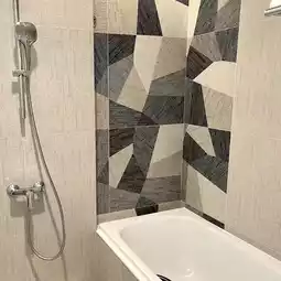 The room is dominated by wood, with geometric patterns added in, giving it a youthful and fashionable feel! The room is of normal size, with a washbasin, separate bathroom and toilet right at the entrance, fully equipped, and even a bathtub! Next up is the bedroom, which has a small sofa and workbench, making it convenient for working or dining!