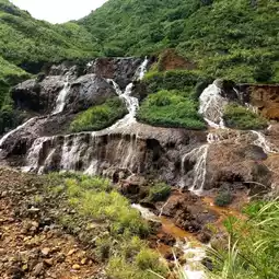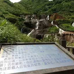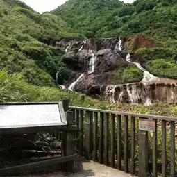 #TaiwanTravel Golden Waterfall or Golden Waterfall (黃金瀑布) is a popular natural tourist attraction located between the mountains and the coast of New Taipei City, Ruifang District. Although it is not a large waterfall, it is considered very interesting in terms of ecology. It is also a path of water flowing into an important river through the Pacific Ocean from the Yin-Yang Sea. What is special is that this waterfall has gold ore. In the past, gold mining was widespread. During the Japanese occupation, the emperor attached great importance to this mineral vein and often visited it. Currently, Taiwan has conserved the mine, prohibiting digging, panning, and mining. It is open to tourists. You can also visit the Jin Gua Shi Gold Museum Park if you have enough time. #Waterfall