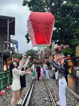 It is currently famous for being a town where people write their wishes on sky lanterns and send them flying over the railroad tracks☺️