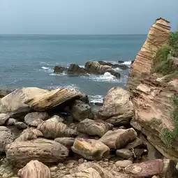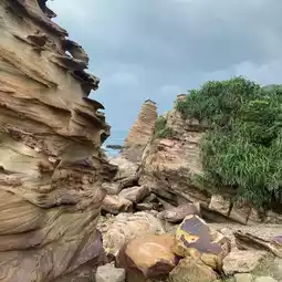 Nanya Rock aka Nanya Peculiar Rock is a layered sandstone column on the shore of RuiFang district. The rocks were formed by the easily eroding sandstone.