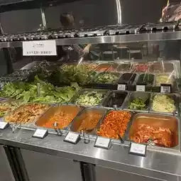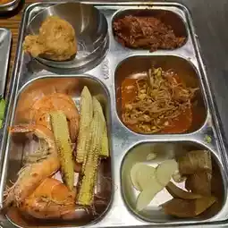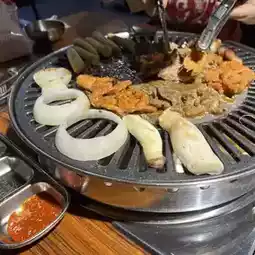 The meals are served by self-service, with a variety of meats, fresh shrimps, vegetables, meat-wrapped leaves, and side dishes to choose from. The meat is fresh and of good quality. Korean fried chicken, spicy rice cakes, rice, drinks, Thai sweet potato ice cream, and a choice of soup for each table (choose one of kelp soup or beef and radish soup).