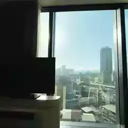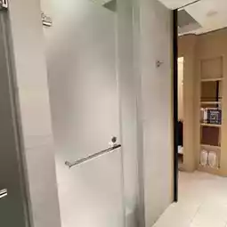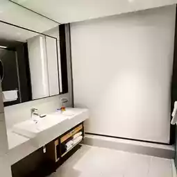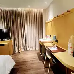 To the right of the room entrance is a small platform convenient for slippers and placing items, next to it is a wardrobe platform where you can stably place a 22-inch carry-on suitcase and a large luggage bag. There is a safe underneath. To the left is the bathroom, which is very spacious and comfortable, with the toilet and shower space being separate. The new bidet toilet not only flushes automatically but also opens the lid automatically. Further inside to the right is a simple work platform combined with a tea area, a nano bar! A not too cold mini-fridge and a chair with a desk lamp. To the left is a double bed and TV. Previous reviews mentioned that the TV is too close to the bed, but personally, I think it's okay, perhaps because I stayed in a corner room. The floor space by the bed is wide enough to sit down an adult. The bed is of moderate firmness. Clean and comfortable. The TV can cast from a mobile phone to YouTube, which is very convenient! There is also a casting instruction manual on the desk. The corner room is very bright with double-sided lighting. For the price, the room type can be considered a great value. The room comes with four bottles of water and a quick-boiling kettle. Sincere and thoughtful, it seems that many guests will eat instant noodles in the room. 😂😂! There are plenty of outlets in the room, including USB charging ports. The only downside is that it is adjacent to County Citizens Avenue, and even on the 11th floor, you can still hear the noise of vehicles whizzing by at night.