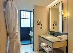 Especially the double-sided panoramic design of the bathroom makes bathing a luxurious experience!