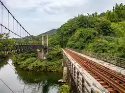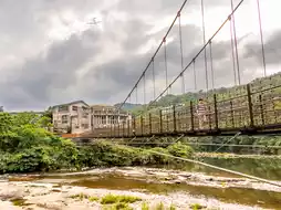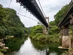 Suspension bridges and iron bridges along the way make the background interesting.