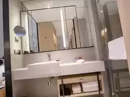 The design of the wardrobe is unique. The wooden door can separate the room and the bathroom when opened, maintaining the independence of the space, which gave me an unexpected surprise~~