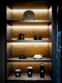 #Songkran2024Travel CHLIV The shop is decorated in black tones. Anyone who comes by bus must see this shop because it is a connecting path to walk up and down to get on the bus. And what is really impressive is the view in front of the shop. You can see the sea and the green mountains. It is very beautiful.