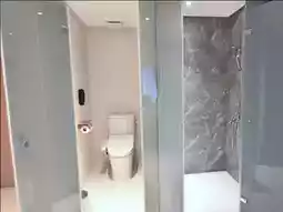Equipped with a shower cabin and a bathtub, providing a comfortable bathing experience.