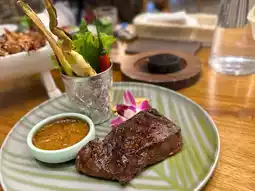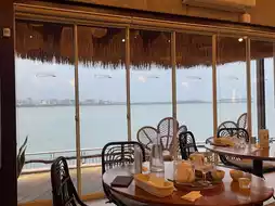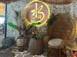 Rongdi Water Bay Restaurant has an outdoor seating area that imitates the Balinese pavilion, facing the Tamsui River, providing an excellent place to watch the night view. The interior decoration is full of the holiday atmosphere of the Southeast Asian Gulf islands, making people feel relaxed and comfortable. The staghorn ferns on the wall and rattan tables and chairs add a sense of nature and leisure, while the oversized landscape glass windows ensure that every seat can enjoy the beautiful riverside view.