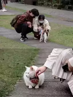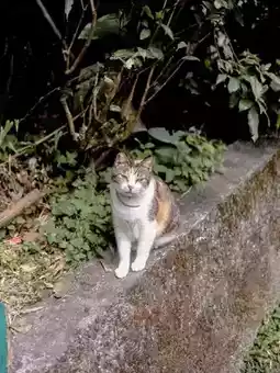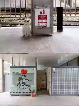 The village is divided into two sides. There is a train station in between. There is a side on the mountain. There are cats in the village and a cafe street with many cafes. Each cafe has a cat in each shop.