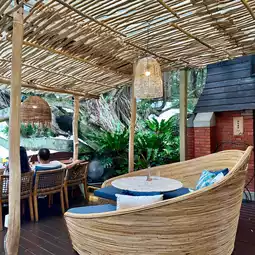 The exterior is exotic, and the interior is also pretty and reminds me of Southeast Asia :)