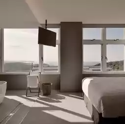 Jiufen has a new sea view accommodation. Not only do the rooms feature large floor-to-ceiling windows, but you can also enjoy a sunset view while soaking in the bathtub. Additionally, a rich minibar is provided for you to fully enjoy your vacation. The closest you can get to the azure sea of Jiufen's mountain town, the building showcases a Wabi-sabi style with concrete walls and cool-toned special paint.