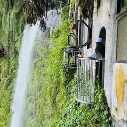 There is a small temple next to the waterfall and there are attractions everywhere.