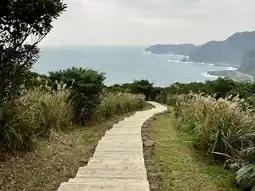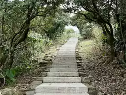 The first half is mainly made of wooden stairs, while the second half is made of stone stairs. There are pavilions along the way where you can rest, drink water and have a picnic, with a vague view of the sea.