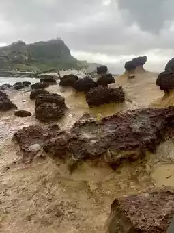 Today is our second day in Taipei. We finally made it to the legendary Yehliu Geopark. I've heard it's one of the wonders of the world! 🏞️✨ Upon arrival, despite the rain, the park was packed, but that didn't dampen the lively atmosphere. 🔥😎