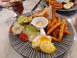 Above with wedges or fries/Eggs Benedict or boiled eggs