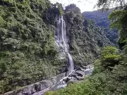 Wulai Waterfall is a high waterfall with a height of 80 meters. It is happy from 230 meters above sea level. The water falls into the valley, forming a stream. The emerald green water is very beautiful.