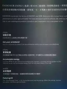 The second floor is the main interactive and educational experience area. Upon entry, you will receive a wristband that interacts with the facilities inside, making it feel like you're entering a challenge game! The five experience areas are quite physically demanding, such as jumping to experience hydroelectric power, pedaling to simulate wind power, and shooting hoops to learn about solar energy... but it's really fun! The interior design is also very beautiful. Finally, the energy accumulated in the 'Discharge Field' transforms into dazzling light and shadow animations, ending the entire experience with a stunning finale.