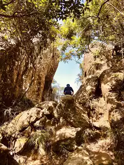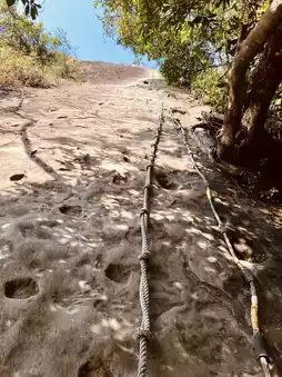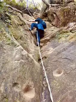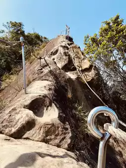 The hiking process of Wuliaojian Mountain is a dual test of physical strength and endurance. Initially, I thought the difficulty of a suburban mountain wouldn't be too high, but this trail seems to be a combination of Taguan Mountain and Guanshanling Mountain. The path winds through the tangled roots of trees, with the uneven roots naturally forming steps. Coupled with steep rock walls and rope climbing sections, although the overall elevation gain is not very high, it is full of challenges.
