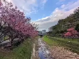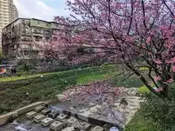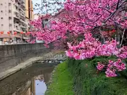In the Xike Park in Xizhi, New Taipei City, right next to the Xintai 5th Road gas station, there is an inconspicuous "Kanggaokeng Creek". Normally, when passing by, I just thought it was a big ditch. Unexpectedly, from mid-to-late January, the cherry blossom forests on both sides burst into full bloom, dyeing the colors into a riot of colors, which is super beautiful! It is really possible to enjoy the cherry blossoms while passing by on the way to work.