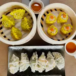 The coffee and meals were served quickly. In addition to the beef bowl, we also ordered curry siomai, crab roe siomai, and the store’s signature dish, shrimp steamed dumplings. It is filled with big shrimps, fresh and delicious 😋, which makes you salivate. The beef bowl set consists of tender beef slices spread over hot white rice, topped with a salty and sweet sauce, a hot spring egg, three side dishes and a cup of hot Japanese green tea. My husband ate with gusto, and even my son, who is usually a picky eater, took a few bites.