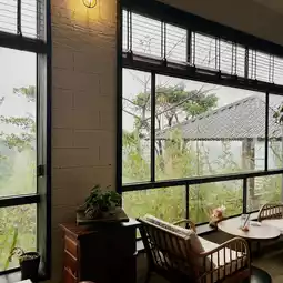 The cafe's decoration is mainly wood, with large glass windows and ceilings, as well as green plants, creating a natural and comfortable atmosphere. I feel it is so beautiful every time I come here😍We chose a four-person seat by the window, but in fact almost every seat in the store is by the window. It is a unique experience to enjoy the mountain view in the rain through the floor-to-ceiling windows.