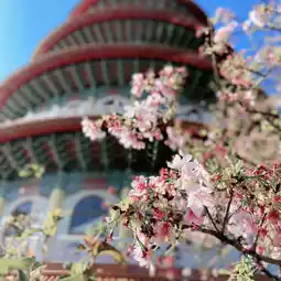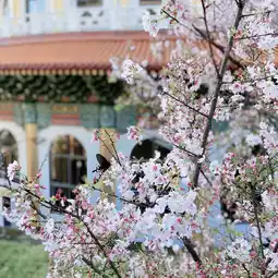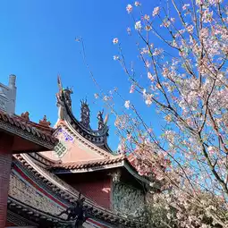 Today, I visited Tianyuan Temple in Tamsui. Although the cherry blossom season is nearing its end, there are still a few cherry trees in bloom in the garden. The pale pink flowers sway gracefully in the breeze, leaving a final romantic mark on spring.