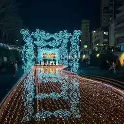 The Xinzhuang Zhonggang Avenue Light Sculpture Show has entered its 6th year since its opening in 2020. The LED lights are becoming more and more numerous and exaggerated. From Zhonggang Plaza all the way to Rainbow Plaza, 3 million LED lights illuminate the entire Zhonggang Avenue, arranging and combining various cool patterns, which are super beautiful and easy to photograph.