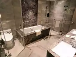 The room is very spacious, with a super comfortable sofa area by the window where you can easily fall asleep. The bed is soft and cozy, and there's even a separate dressing room, making great use of the space. Of course, there's also a bathtub for a relaxing soak. The value for money at Caesar is really high; I doubt you could get this price at the neighboring Hilton.